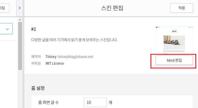2) 오른쪽 스킨 편집에서 [html 편집] 클릭