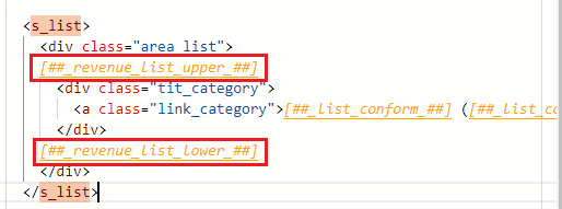4) <s_list> 내부에 상단, 하단 치환자 추가