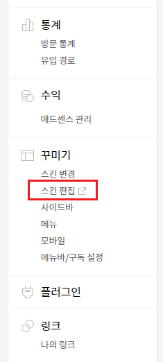 1) 블로그 관리 메인 메뉴에서 [스킨 편집] 선택
