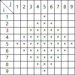 설명한 i 와 j 를 문제의 예시 출력(n = 5인 경우)으로 표현하면 아래와 같습니다.