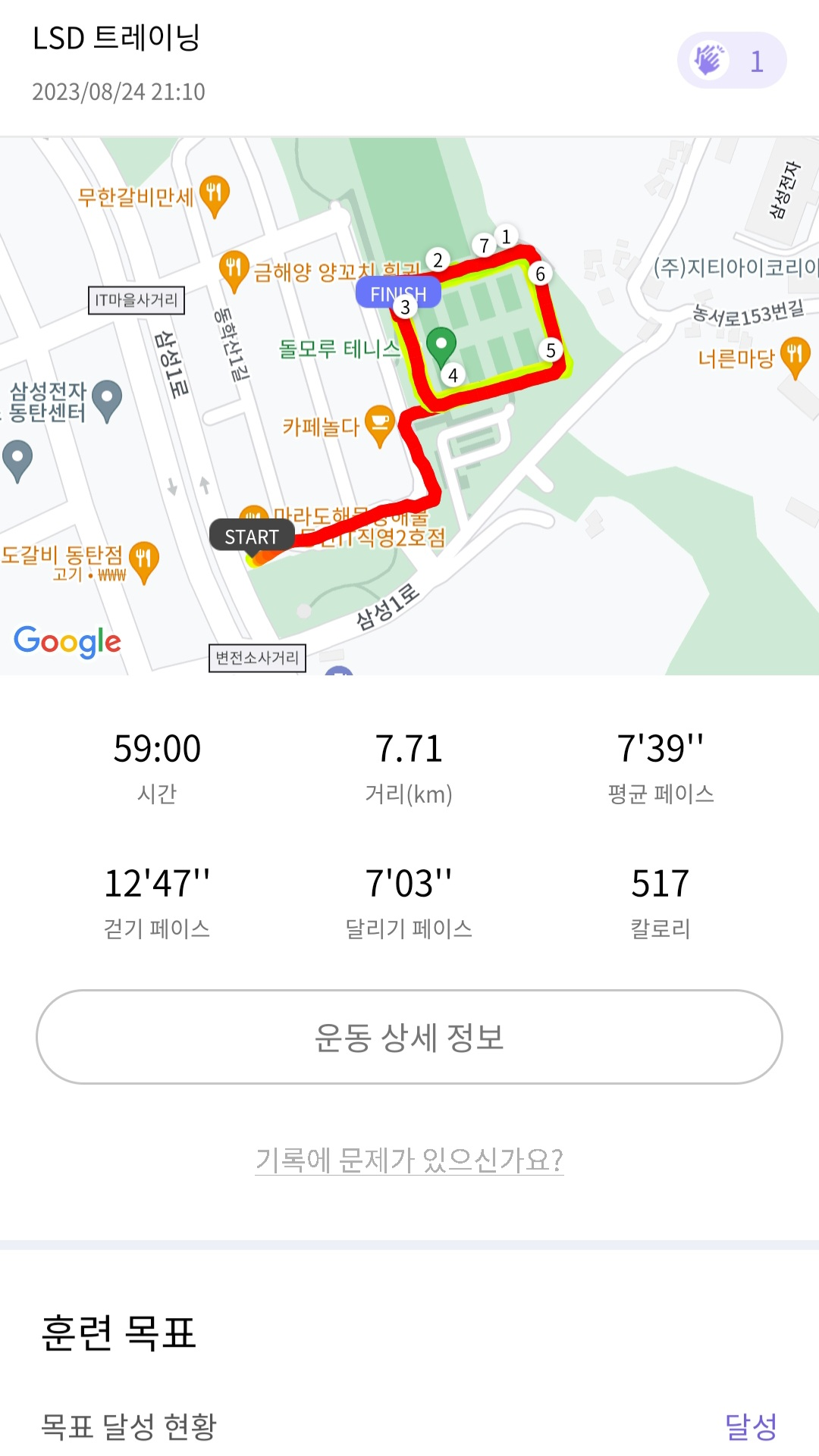 이를 참고 넘기고 나니 너무나도 편하게 약 50분의 LSD 훈련을 쉽게 마칠 수 있었다.