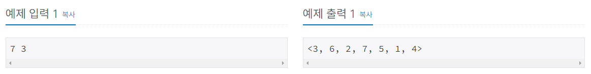 백준 온라인 저지(BOJ) 11866번 요세푸스 문제 0