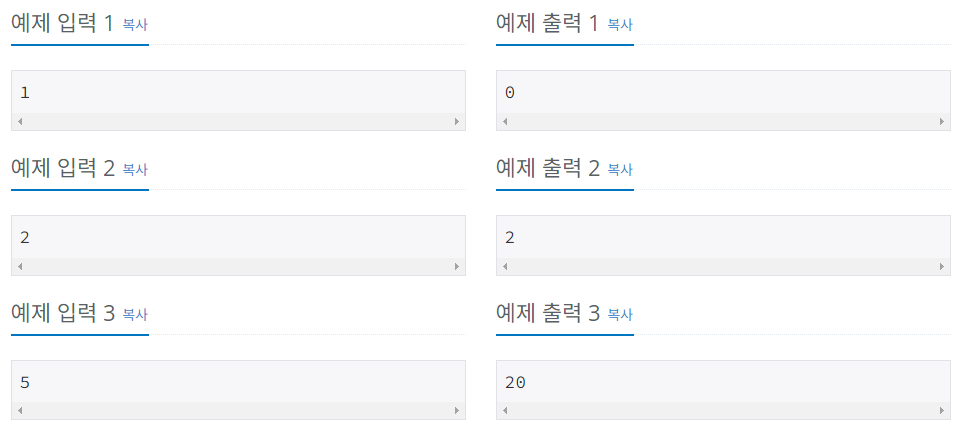 따라서 N * (N - 1)을 출력하면 됩니다.