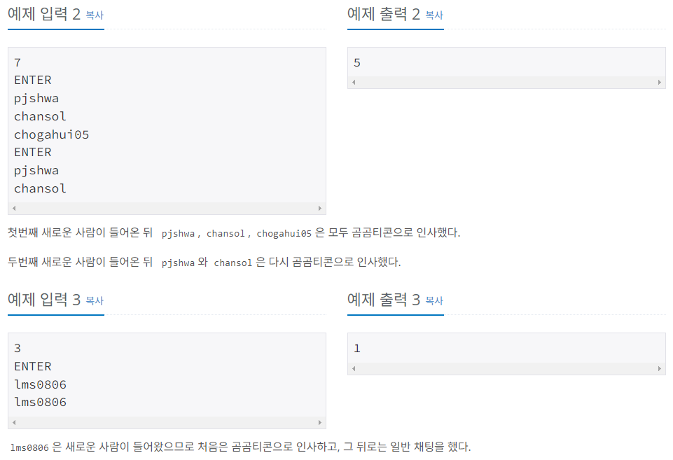 백준 온라인 저지(BOJ) 25192번 인사성 밝은 곰곰이