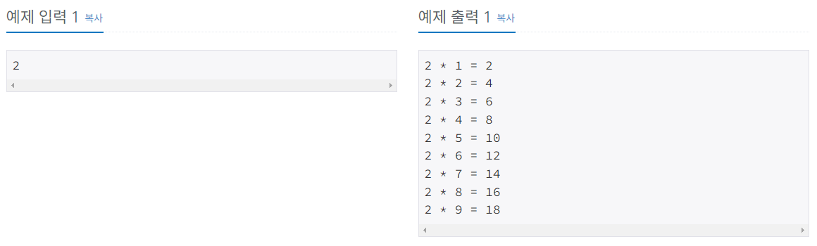 백준 온라인 저지(BOJ) 2739번 구구단