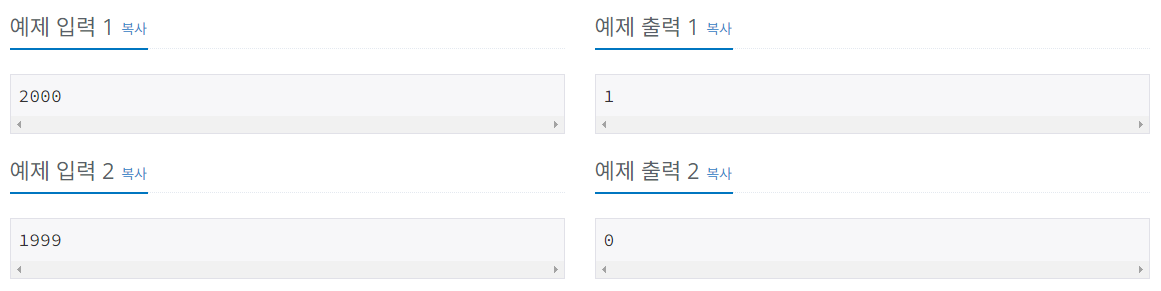 연도가 주어졌을 때, 윤년이면 1, 아니면 0을 출력